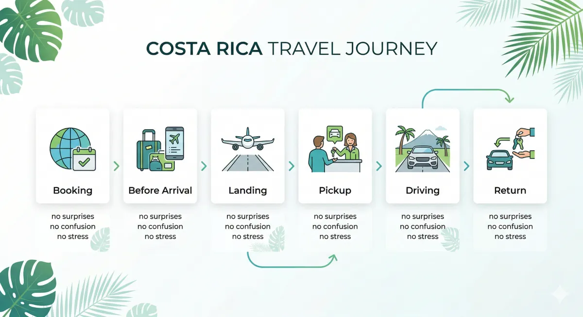 We meet you directly at SJO or LIR and guide you step by step from the airport to your vehicle — clear, fast, and stress-free.