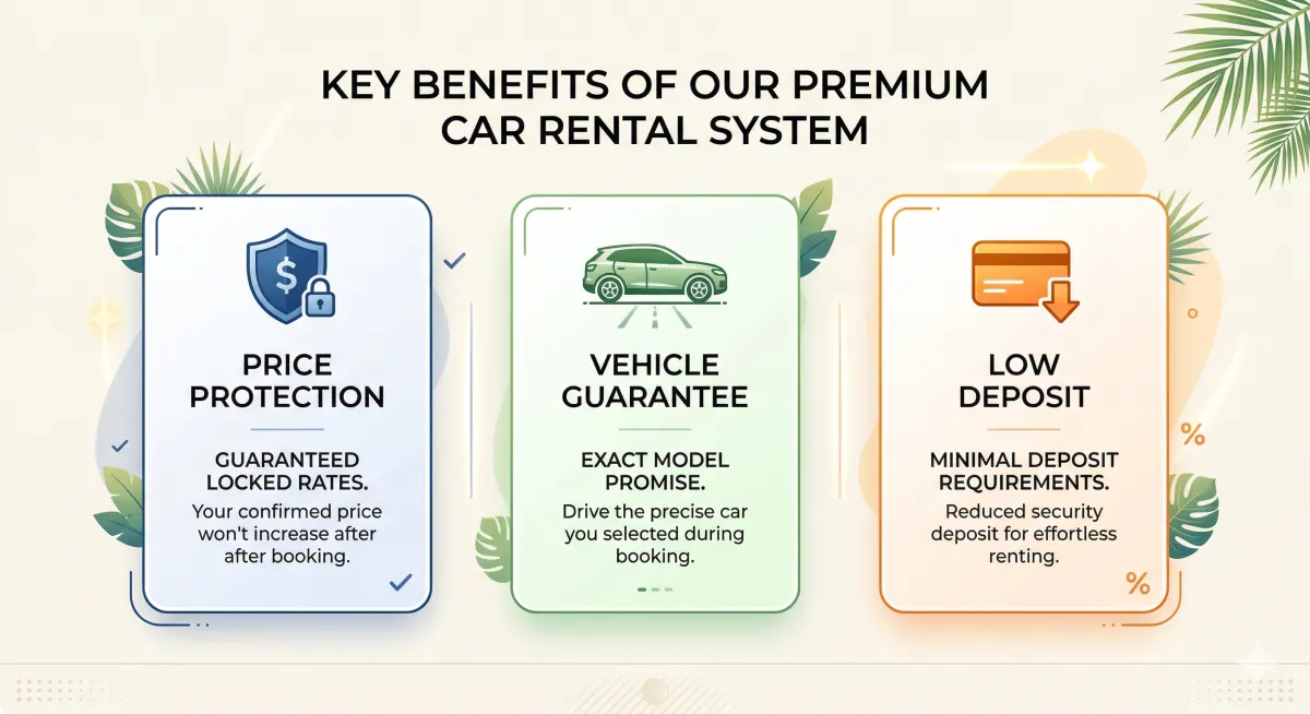 Your vehicle is secured in advance — no last-minute surprises when you arrive.